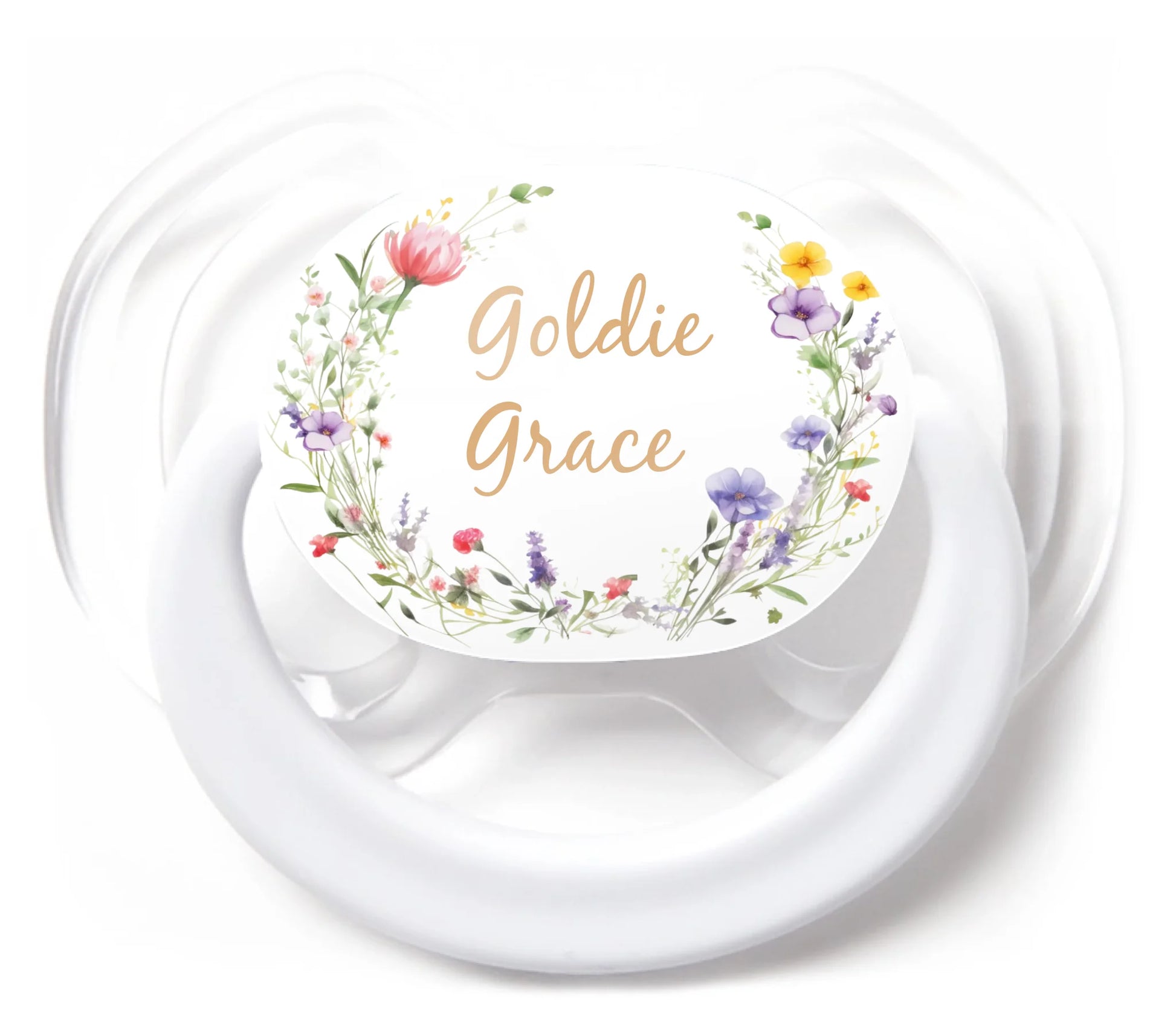 We use a process called UV Ink Jet Printing, where we print directly onto the plastic back of the pacifier, and use a UV light to cure the print. This allows for a highly customizable product, with full color and high quality.