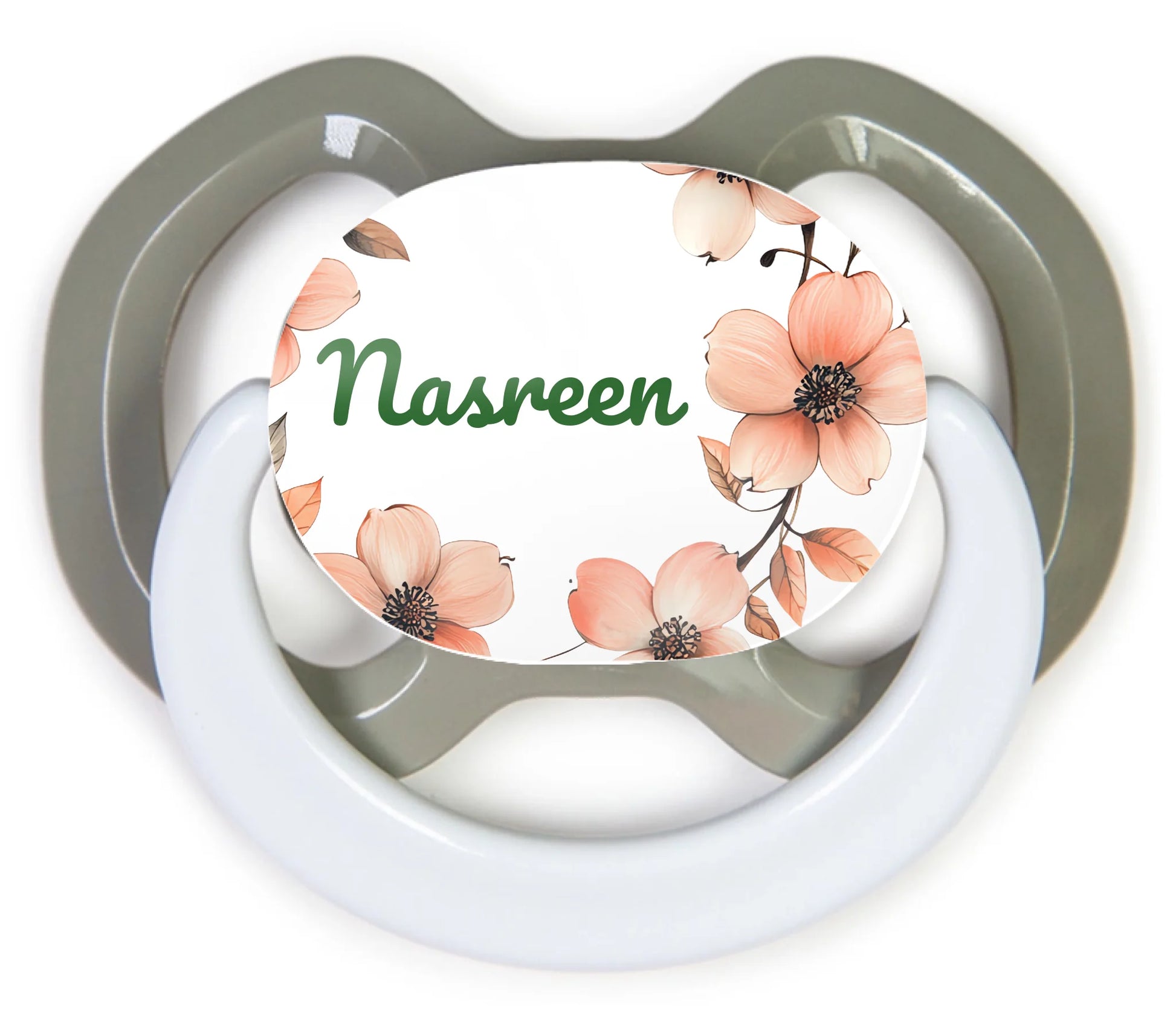 Give your baby the latest in pacifier fashion with a custom pacifier! Made with a silicone orthodontic nipple, this pacifier is designed to exceed all safety standards and look good with your custom printed text or graphics. Perfect for a baby's name or a witty expression, a custom pacifier is a fun way to get and give peace of mind.