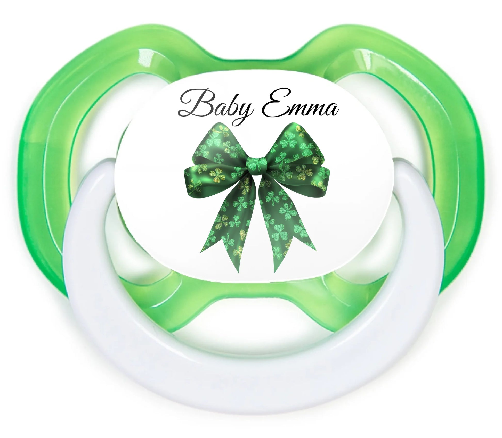 Give your baby the latest in pacifier fashion with a custom pacifier! Made with a silicone orthodontic nipple, this pacifier is designed to exceed all safety standards and look good with your custom printed text or graphics. Perfect for a baby's name or a witty expression, a custom pacifier is a fun way to get and give peace of mind.