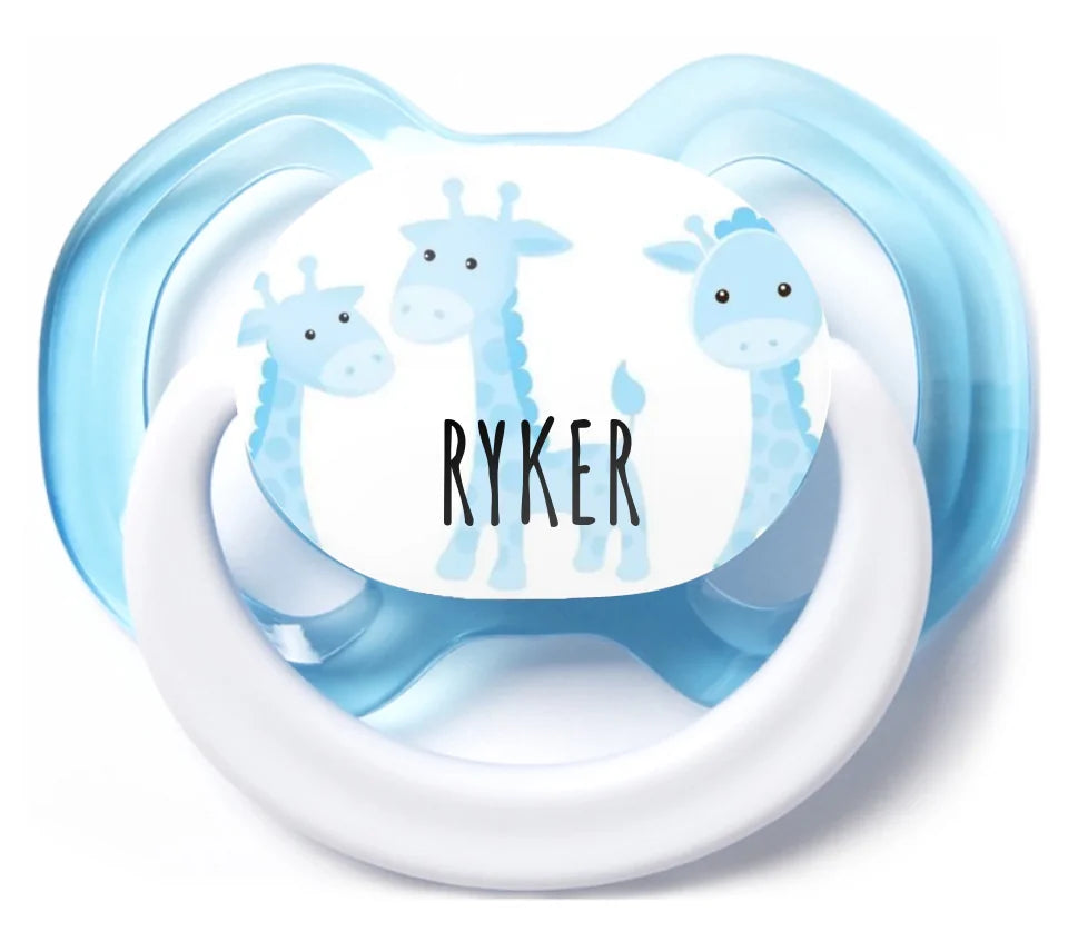 Give your baby the latest in pacifier fashion with a custom pacifier! Made with a silicone orthodontic nipple, this pacifier is designed to exceed all safety standards and look good with your custom printed text or graphics. Perfect for a baby's name or a witty expression, a custom pacifier is a fun way to get and give peace of mind.