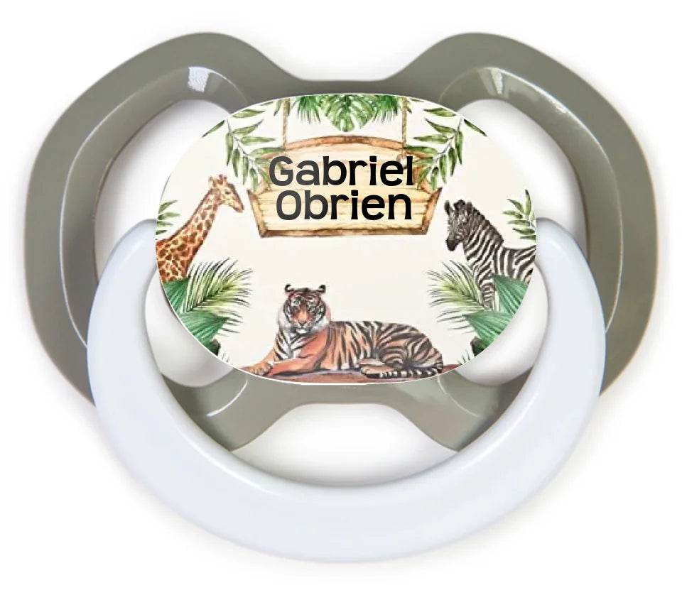 We use a process called UV Ink Jet Printing, where we print directly onto the plastic back of the pacifier, and use a UV light to cure the print. This allows for a highly customizable product, with full color and high quality.